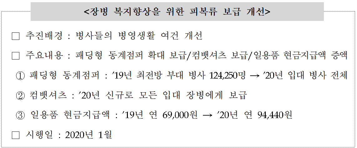 (2) 최전방에게만 보급되던 패딩이 전 병사에게 보급됩니다.