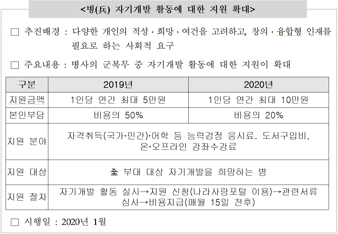 (1) 군인 자기 계발 비용이 연간 최대 10원으로 늘어납니다!
