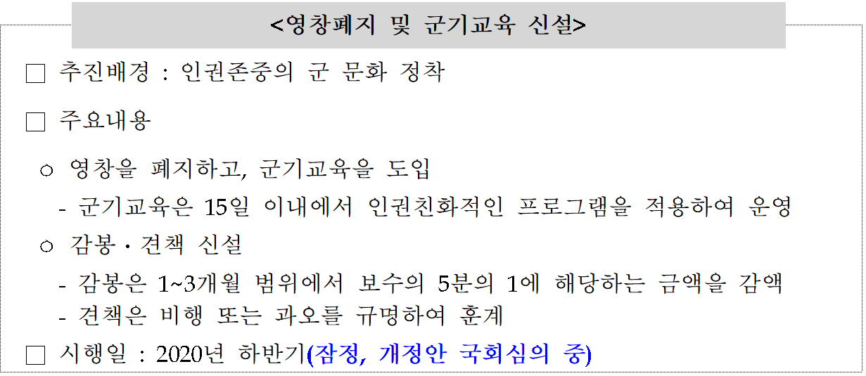 (3) 군대 영창 폐지 및 군기 교육 신설