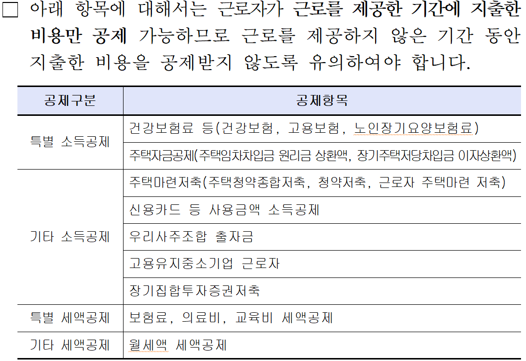 (1) 공제 요건 충족여부는 근로자 스스로 확인 필요합니다.