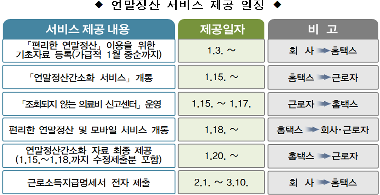 국세청에서는 근로자와 회사가 연말정산을 보다 편리할 수 있도록 하는