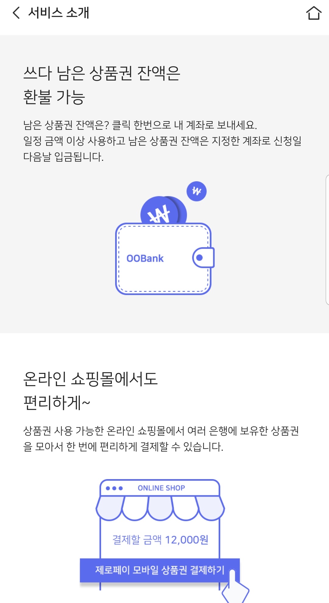 제로 페이와 자동으로 연계된 제로 모바일 상품권이 나옵니다.