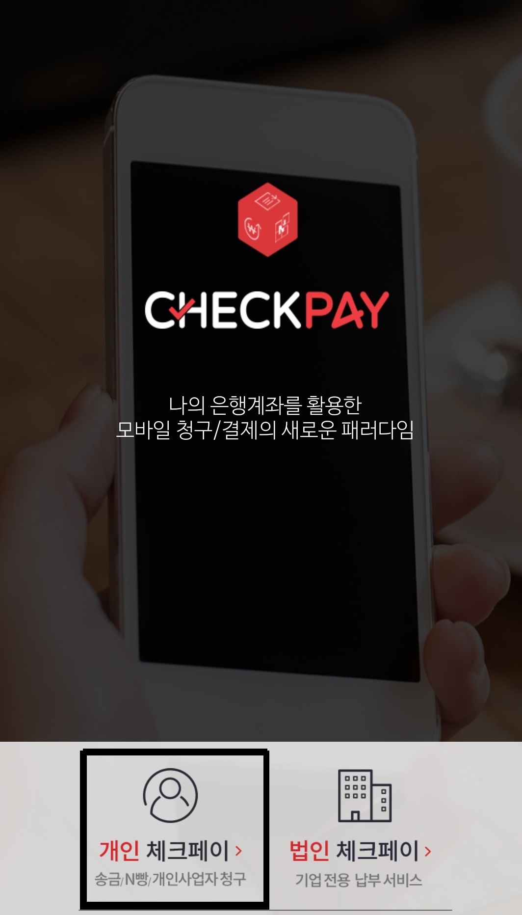 체크페이 어플 중에서 개인 체크 페이를 누른 다음 개인인증을 하고 나면