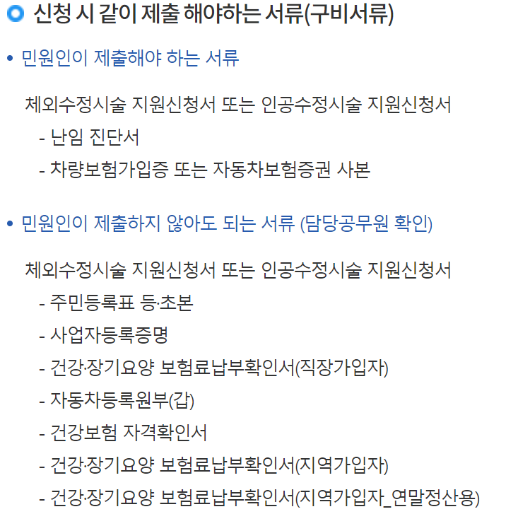 [난임 시술비 지원 신청 서류]