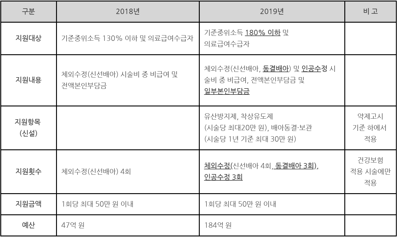 신선배아 체외수정 : 1회 최대 지원액 110만 원