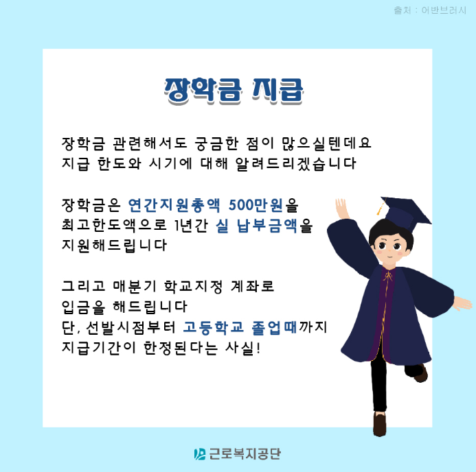 근로복지공단은 산재근로자 자녀에게 안정적 교육기회를 제공하고 가정경제에