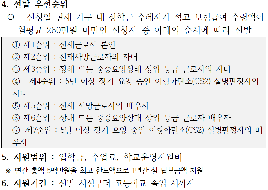 산재근로자 자녀 고교 장학금 전액 지원!