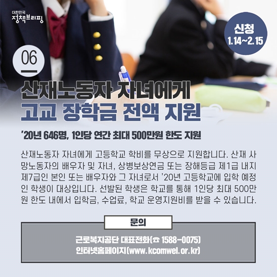 산재근로자 자녀 고교 장학금 전액 지원!제태크 및 경제정보/경제소식 2020. 1. 20. 17:55반응형