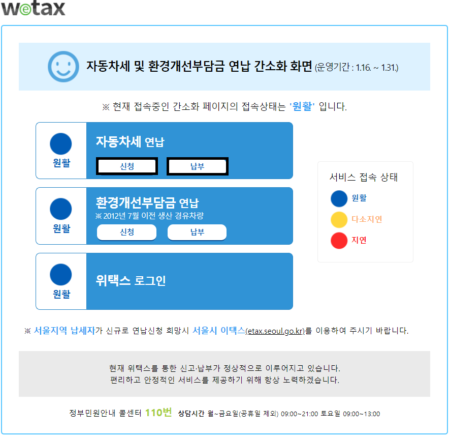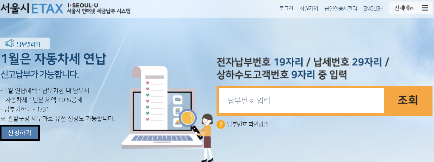 다른 지역과 달리 서울은 이택스 홈페이지를 통해 서울차량에 대한 자동차세를 받고 있습니다.
