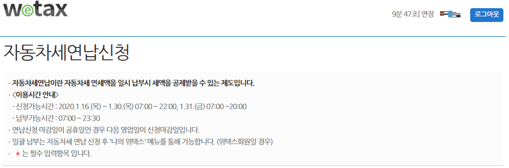 자동차세 연납을 위해서는 위택스 홈페이지를 이용하면 손쉽게 가능합니다.