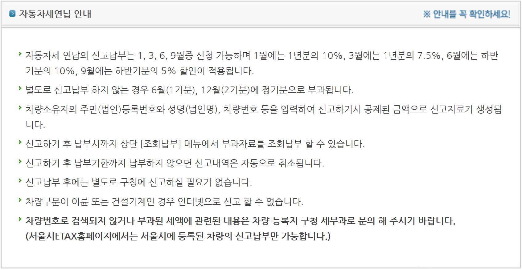 마지막은 자동차세 연납에 대한 유의사항이니 읽어보시면 좋겠네요.