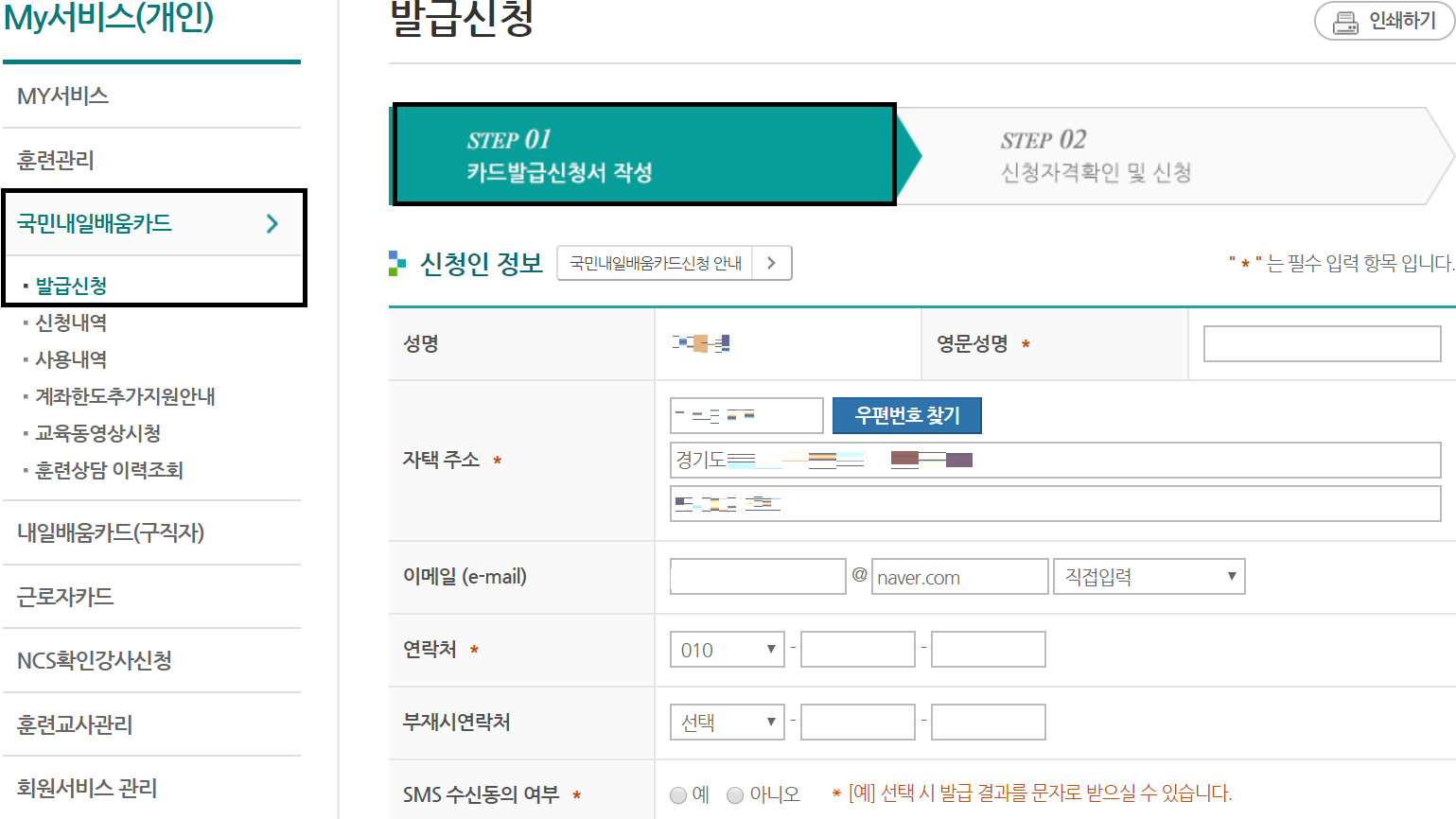 위에 처럼 국민내일배움카드 - 발급 신청을 눌러주면 되는데요.
