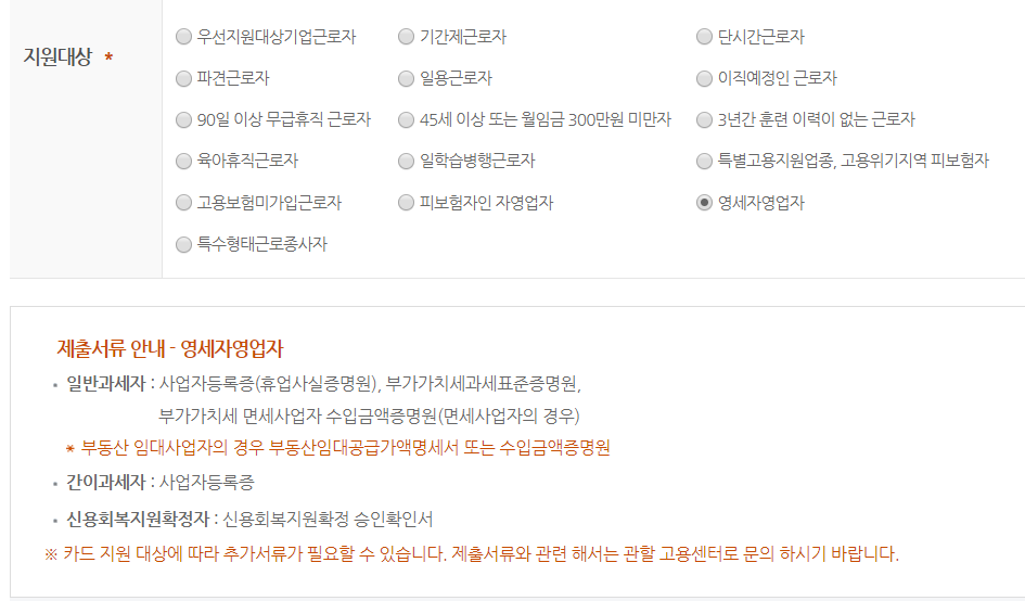 그리고 자신이 지원하는 대상이 무엇인지 자영업자인지, 기간제 근로자인지 등