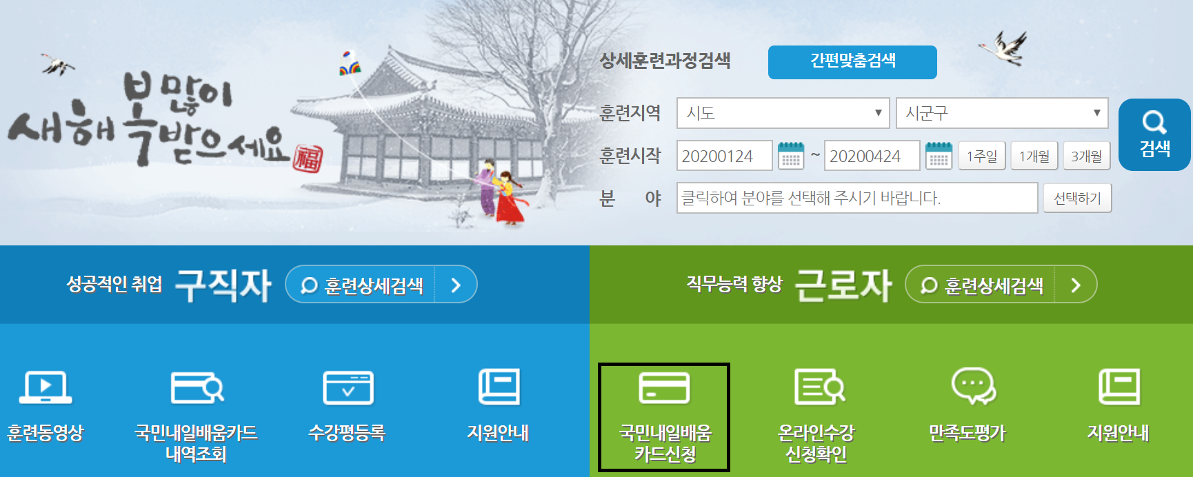 홈페이지 메인화면에 보면 국민내일배움카드신청이 있습니다.