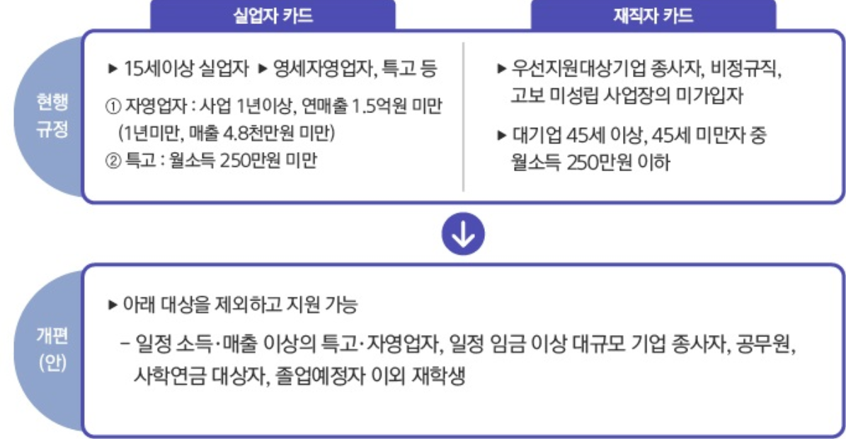 단, 공무원, 사립학교 교직원, 졸업예정자 이외 재학생, 연 매출 1억 5천만 원 이상 자영업자