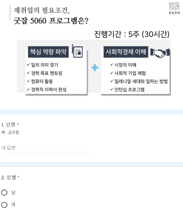 신청하기를 누르면 간단한 양식을 작성하는 구글폼 서식으로 넘어가는데요.