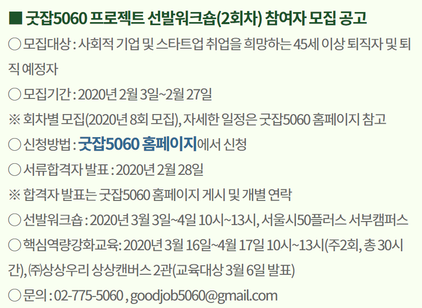 신중년 일자리 사업 프로젝트 굿잡5060 신청은