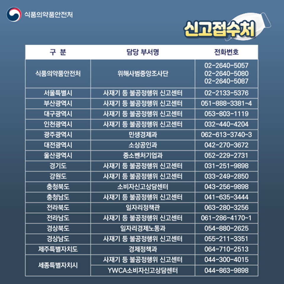 식품의약품안전처 신고접수처 온라인 신고 외에는 대표 전화