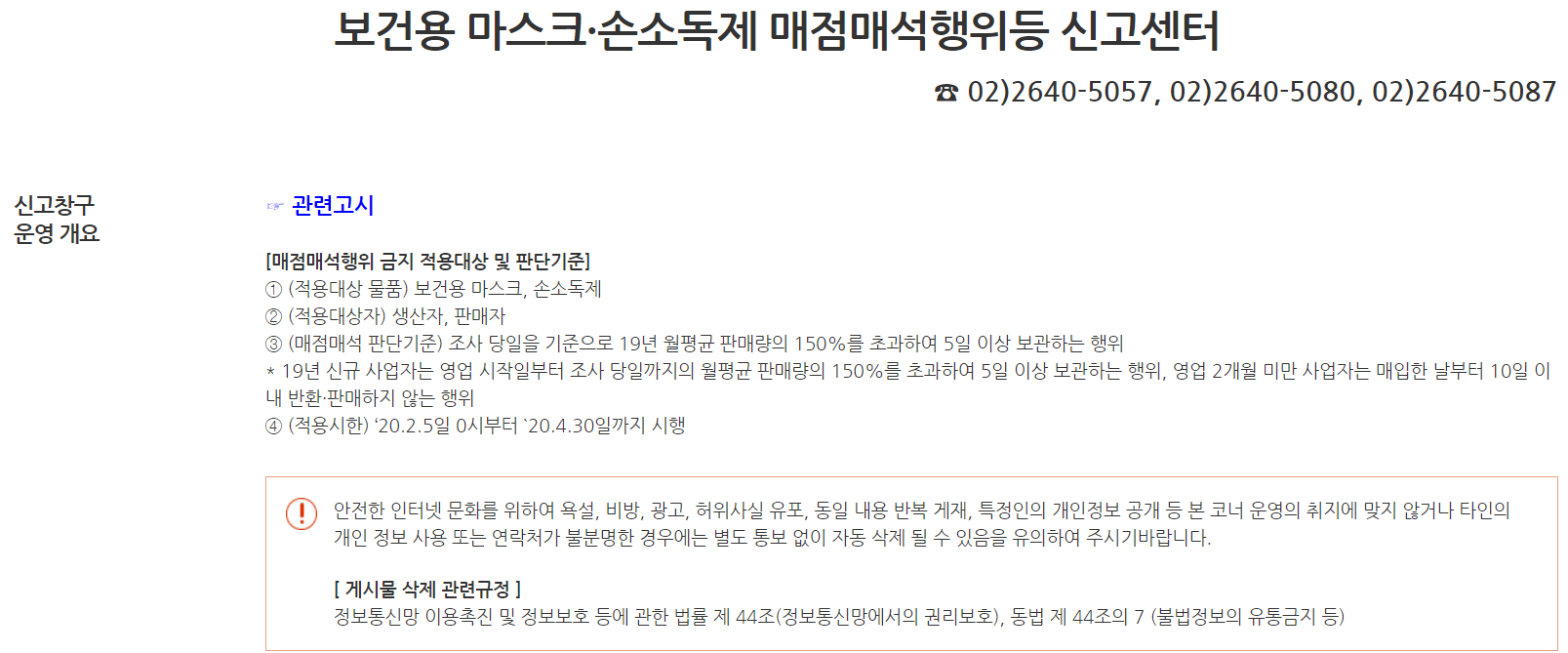 마스크 손소독제 매점매석행위 신고센터 [신고방법]