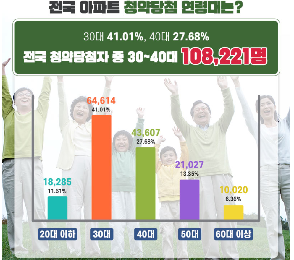 30~40대가 비교적 어리지만 실제로 차지하는 비율은 전국 아파트 조사결과 가장 많았습니다.