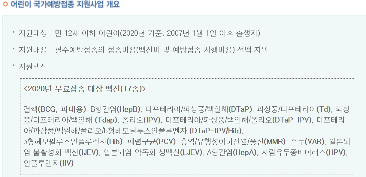 꼭 한번 예방접종 도우미 사이트를 활용해 어린이 국가 예방접종 사업을 알아두셔야 합니다.