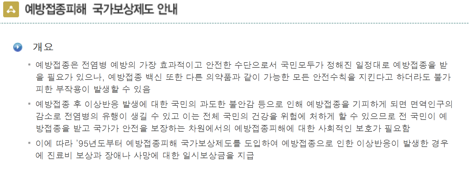 예방접종피해 국가보상제도 불가피한 경우 예방접종으로 인해 부작용이 발생할 경우