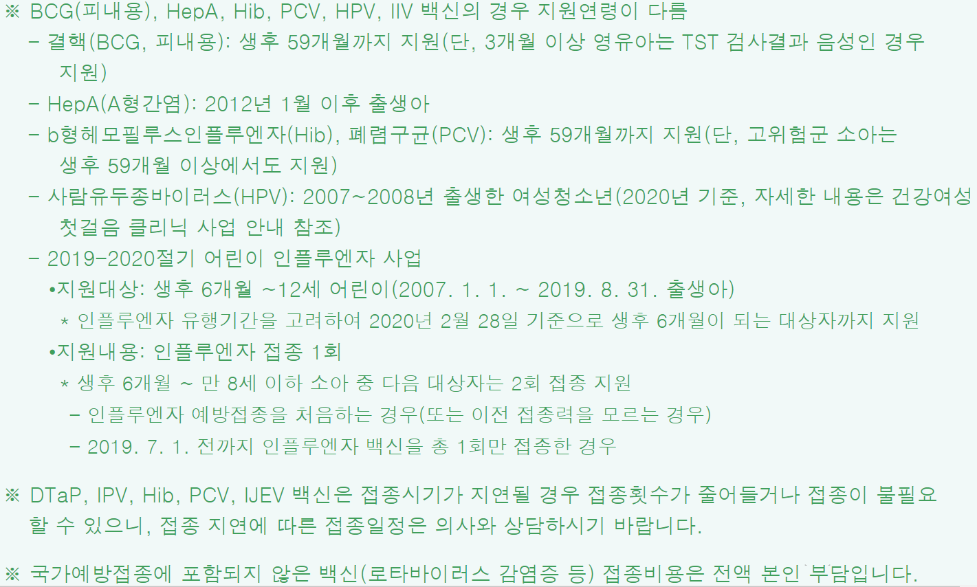 필수예방접종의 접종비용(백신비용) 전액 지원!