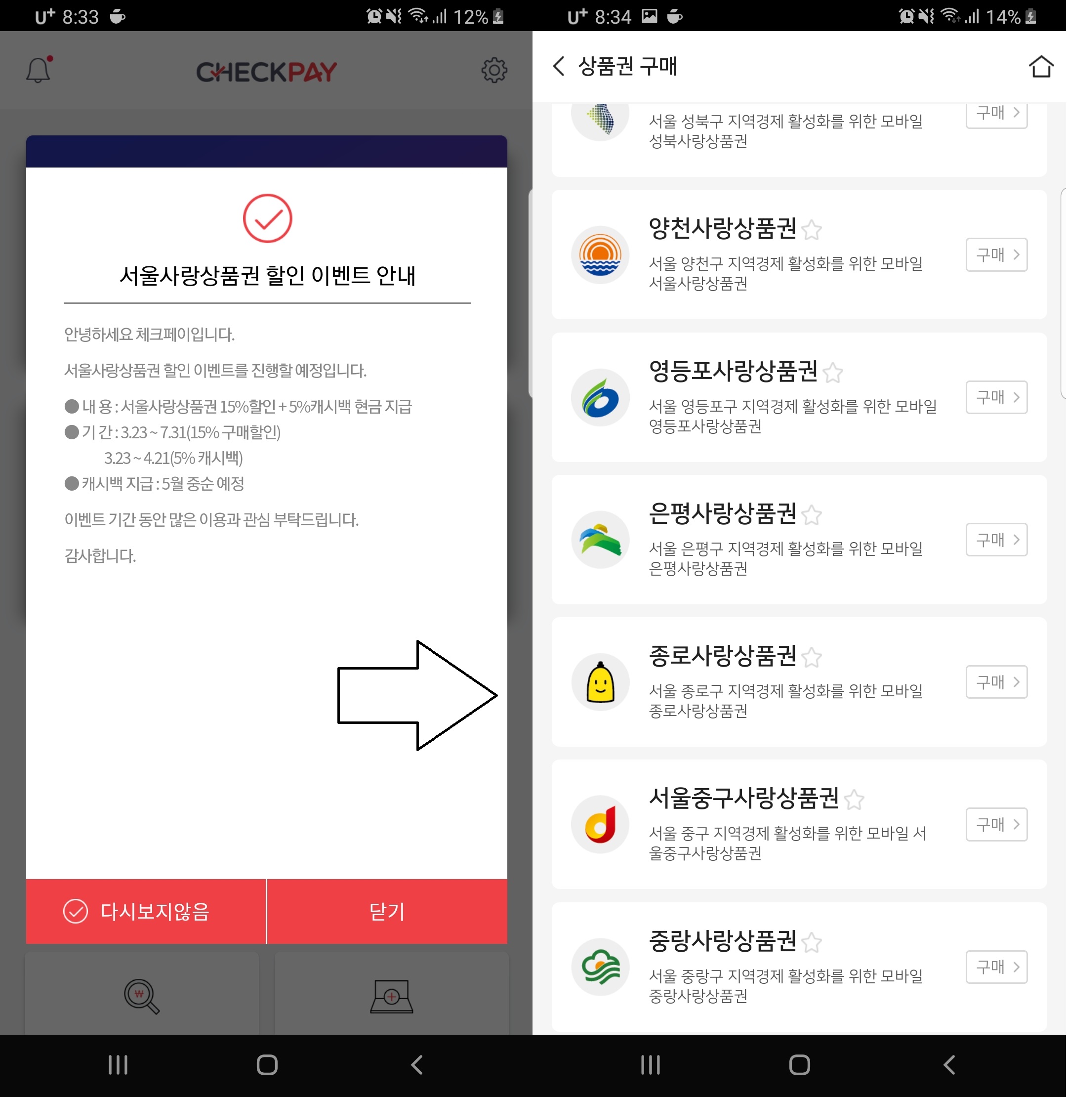 체크페이로 구매하기 실제로 체크페이를 통해서 서울사랑 상품권을 구매하려고 들어가 봤더니