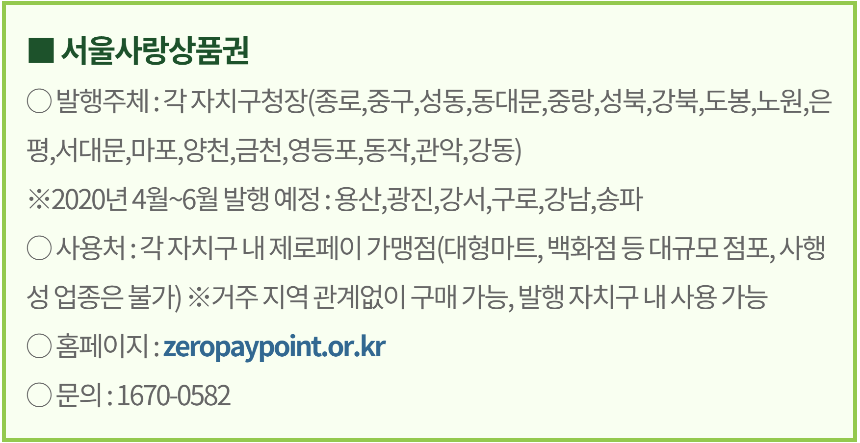 서울사랑 상품권 사용처 [서울사랑상품권 사용처]