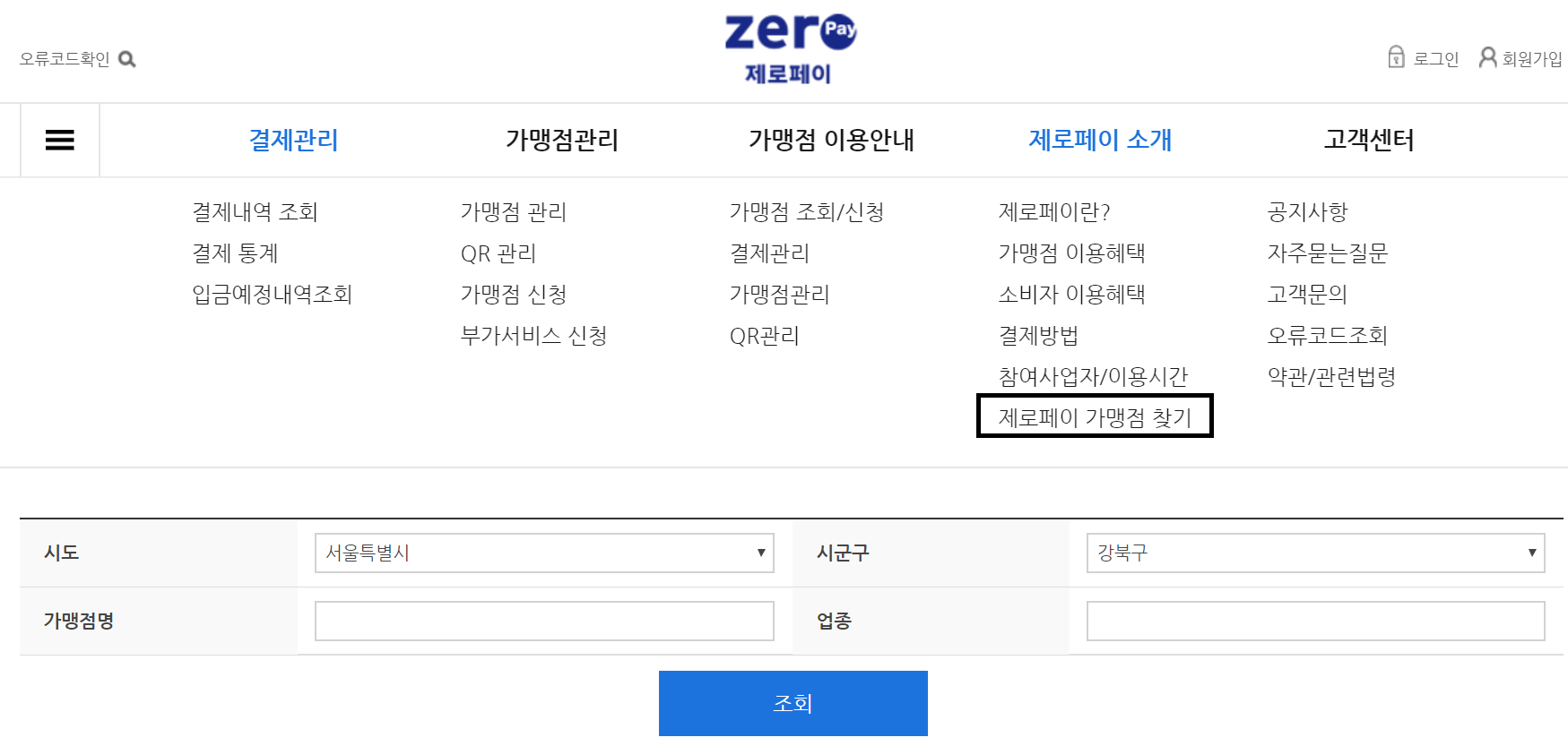 제로페이 홈페이지(zeropay.or.kr)를 통해 가맹점 찾기를 해주시고