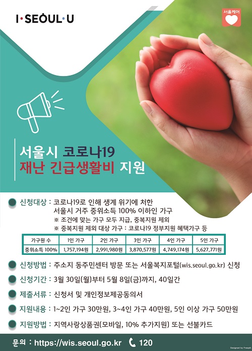서울시 긴급지원 자격이 되시는 분들은 반드시 확인하시어 오는 30일에는 바로 신청하여 지원받길 바라겠습니다.