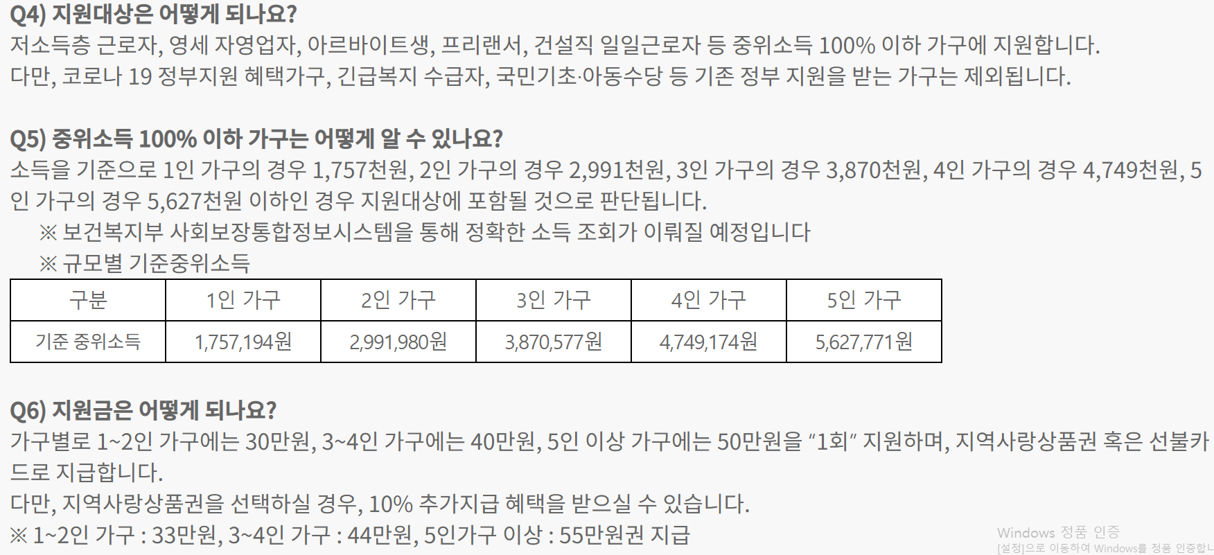 지원자격 즉, 아동수당을 받고있는 가구나, 노인일자리에서 혜택을 보는 분들 말고