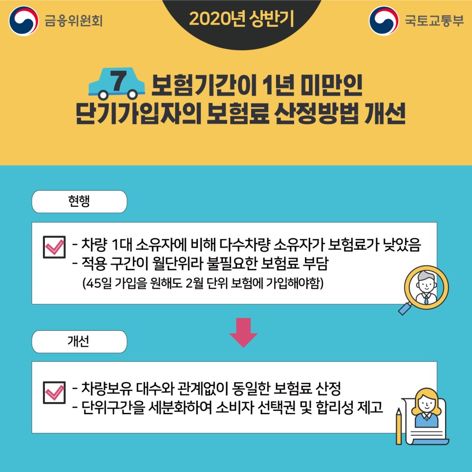 단기 자동차보험 가입자 보험료 산정방법 개선 현재는 차량 1대 소유자에 비해 다수 차량 소유자가 보험료가 낮습니다.