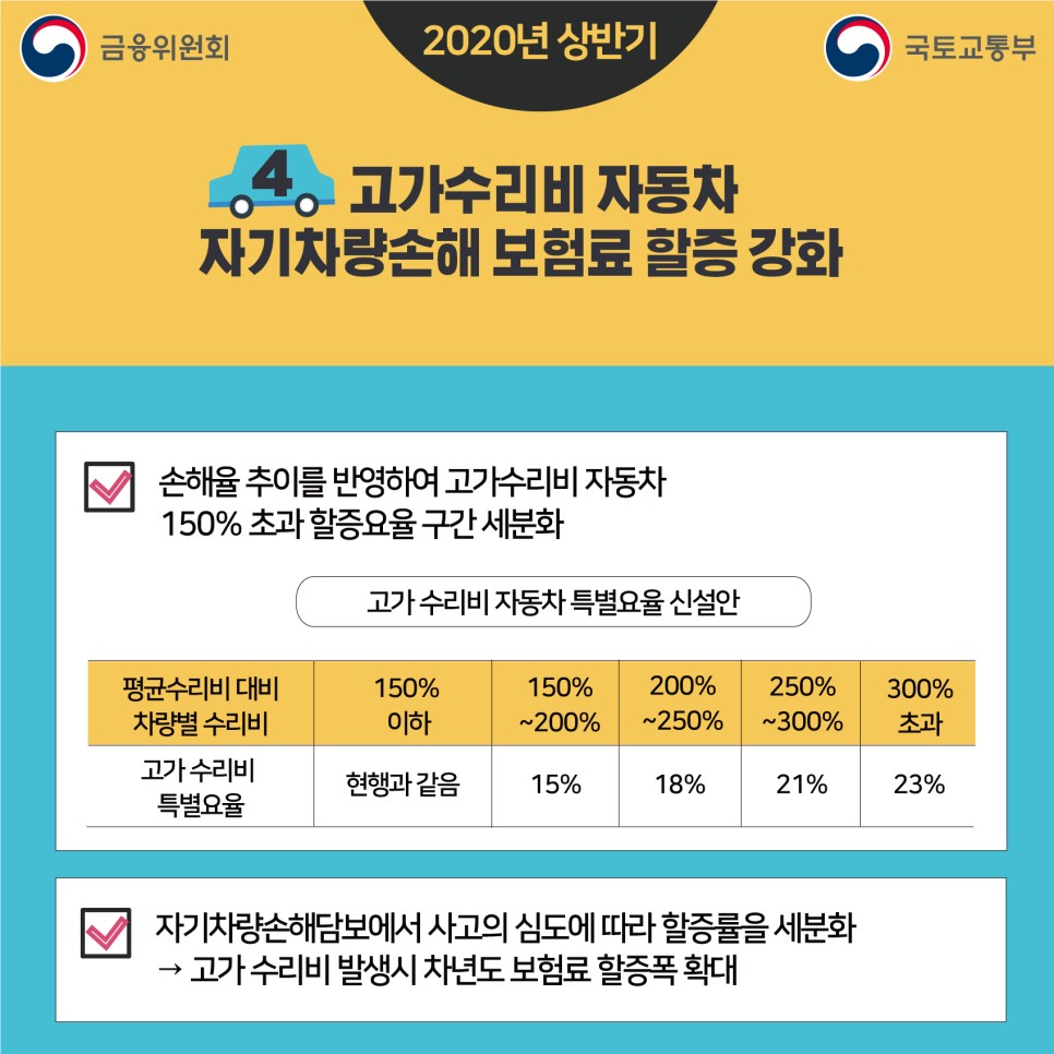 손해율 추이를 반영하여 고가 수리비 자동차의 경우