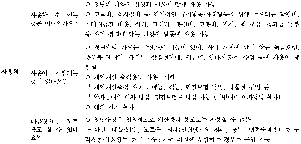 청년수당 사용처 확인 교육비, 독서실비 등 직접적인 구직활동·사회활동을 위해 소비되는
