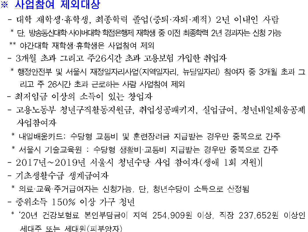 청년수당 사업참여 제외대상 ▼신청 제외 대상(중복수혜 불가능)