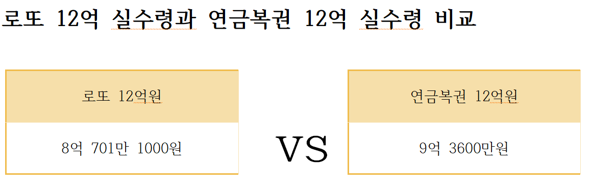 같은 금액이 당첨되더라도 로또보다는 연금복권이 실제 수령하는 금액이 많다는 것을 알 수 있습니다.