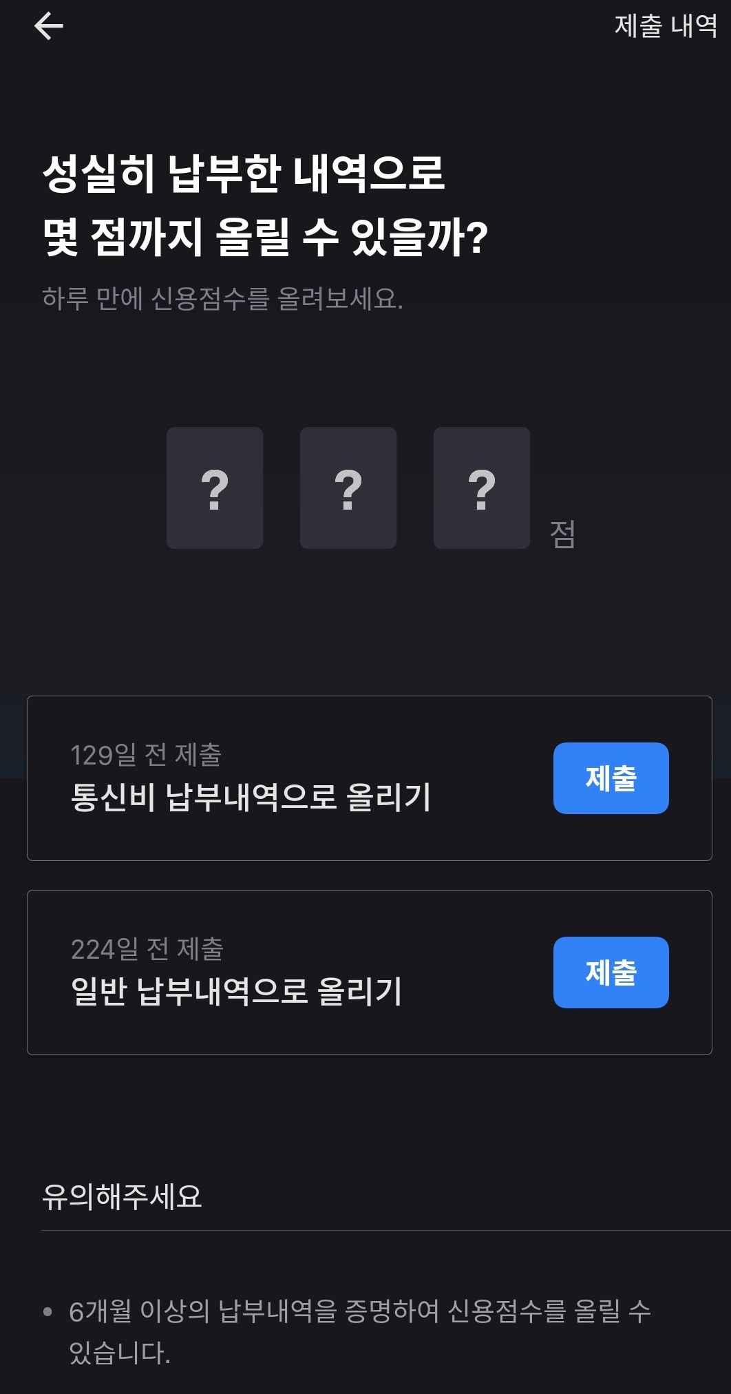 통상적으로 6개월 이상의 납부내역을 증명해야 점수가 올라간다고 합니다.