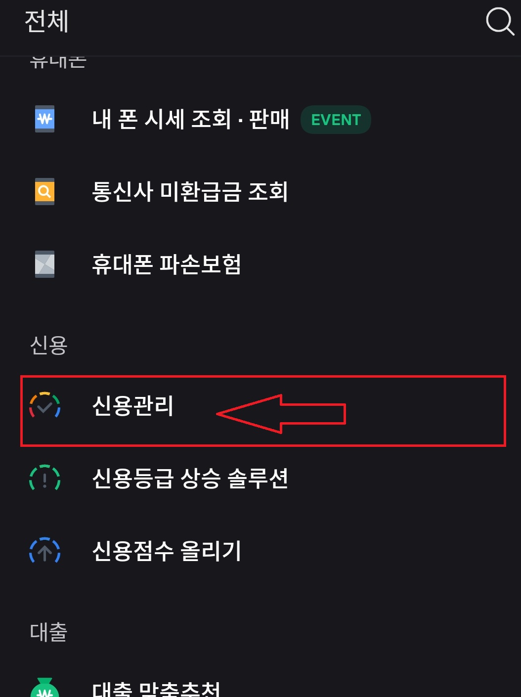 신용관리를 누르면 무료 신용등급 조회하기가 가능한데요.