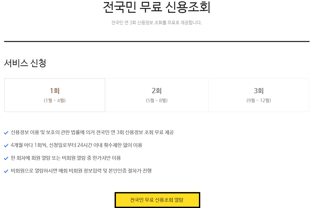 전국민 무료 신용등급조회 올크레딧에서는 1년에 총 3번을 무료 신용조회할 수 있습니다.