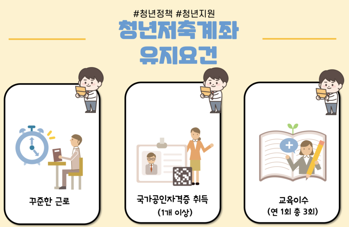 2) 청년저축계좌 통장 가입기간 내에 국가공인자격증 1개 이상을 취득해야 합니다.