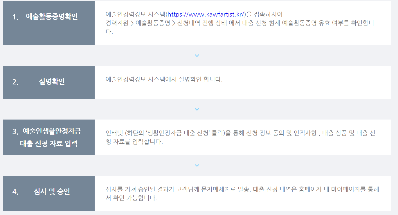 신청방법 앞서 살펴본 것처럼 예술활동 증명이 선행되어있어야 신청 자체가 가능하므로 자신의 상황을 먼저 파악해야 합니다.