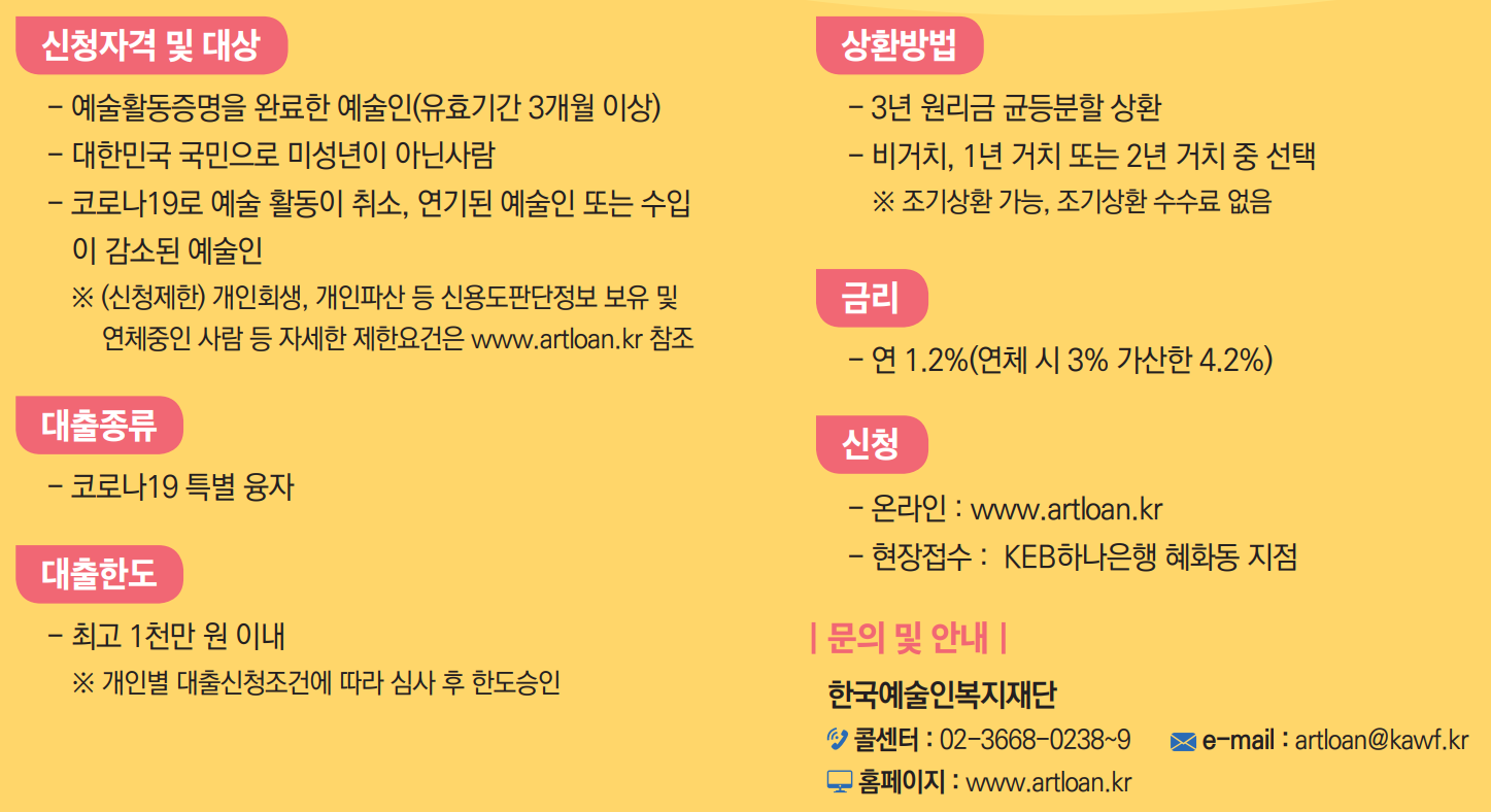 코로나19 예술인 특별융자 ▼예술인이라면 신청해볼까요