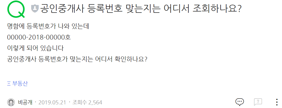 이럴 때를 대비하여 최종 계약 전에 부동산중개업에 대한 조회를 필수로 해야 해요.
