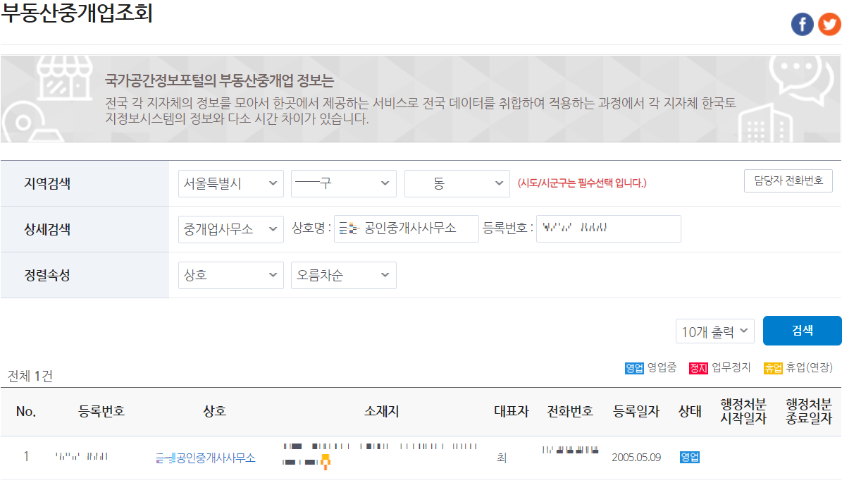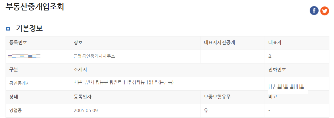 다음은 등록번호를 바탕으로 실제 운영되는 부동산중개업소인지 알아볼 수 있습니다.