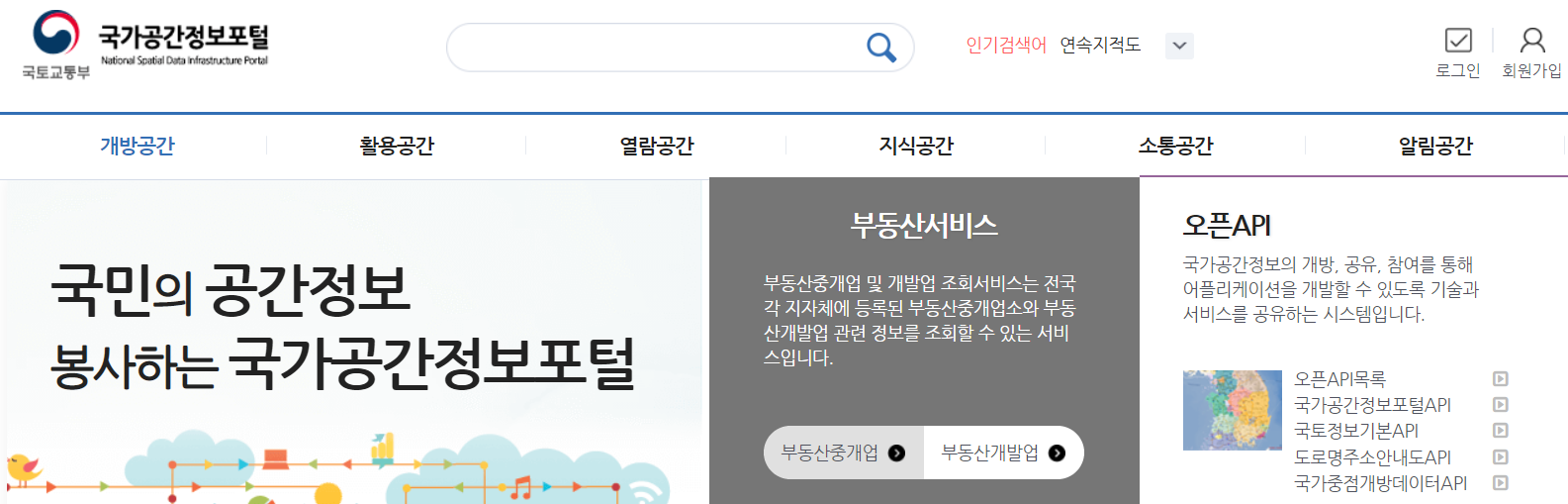국가공간정보포털 국가공인자격증인 공인중개사 자격은 정보를 한 번에 조회하고 검색을 할 수 있는 공간이 있습니다.