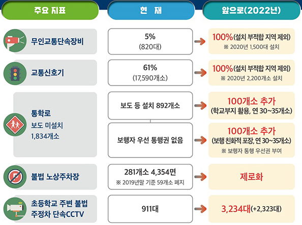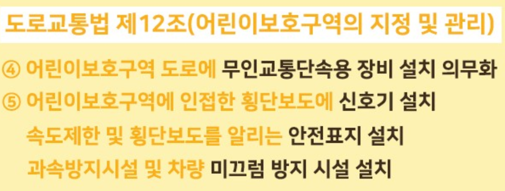 민식이법 개정 내용 /경찰청 1) 어린이보호구역 도로에 무인교통단속용 장비 설치가 의무화됩니다.
