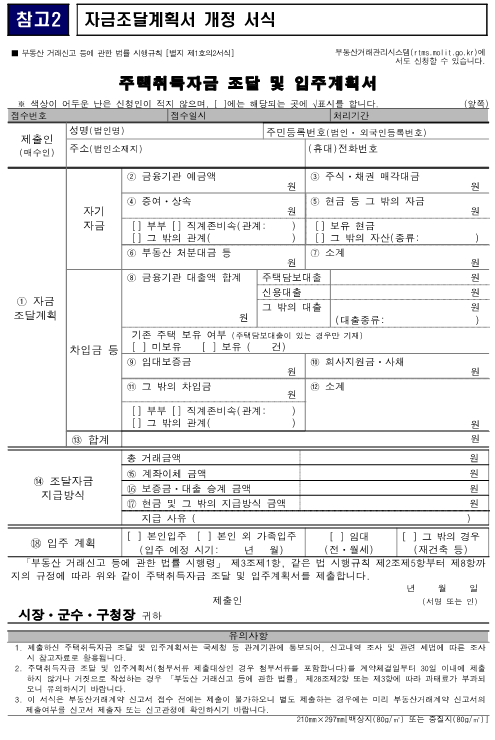 주택자금 조달계획서는 반드시 개정되었기에 새로운 것을 다운로드하여 활용해야 합니다.