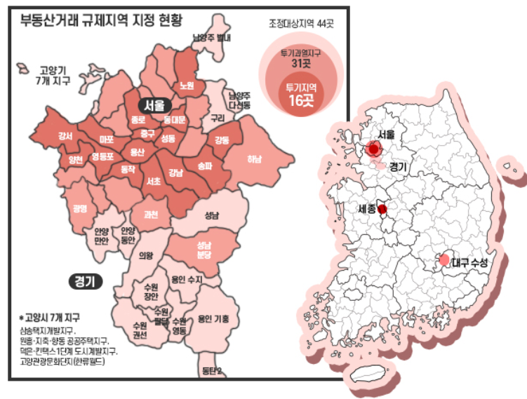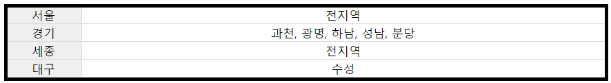 주택자금 조달계획서 제출대상 조정지역을 살펴보면 서울, 세종은 전 지역에 해당하며 대구는 수성구가 포함됩니다.