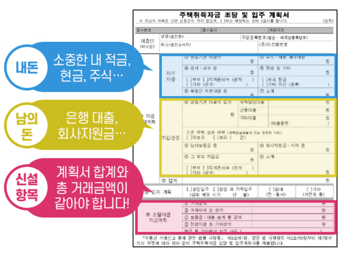 우선 주택자금 조달계획서와 증빙서류는 별개라는 것을 기억해주세요.
